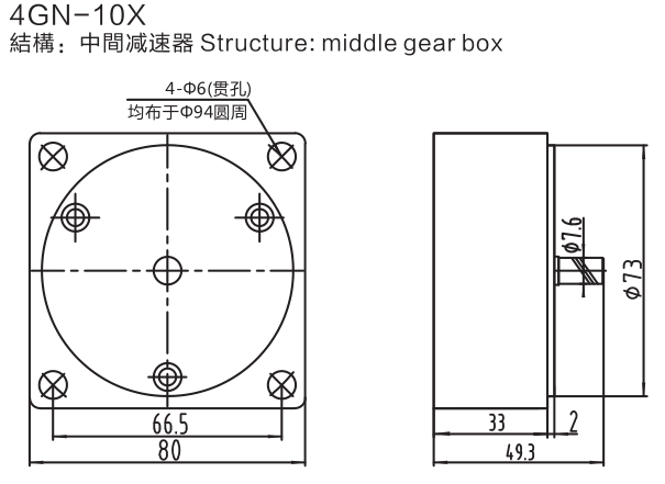 減速機(jī)的外形尺寸有:60/70/80/90/100/120