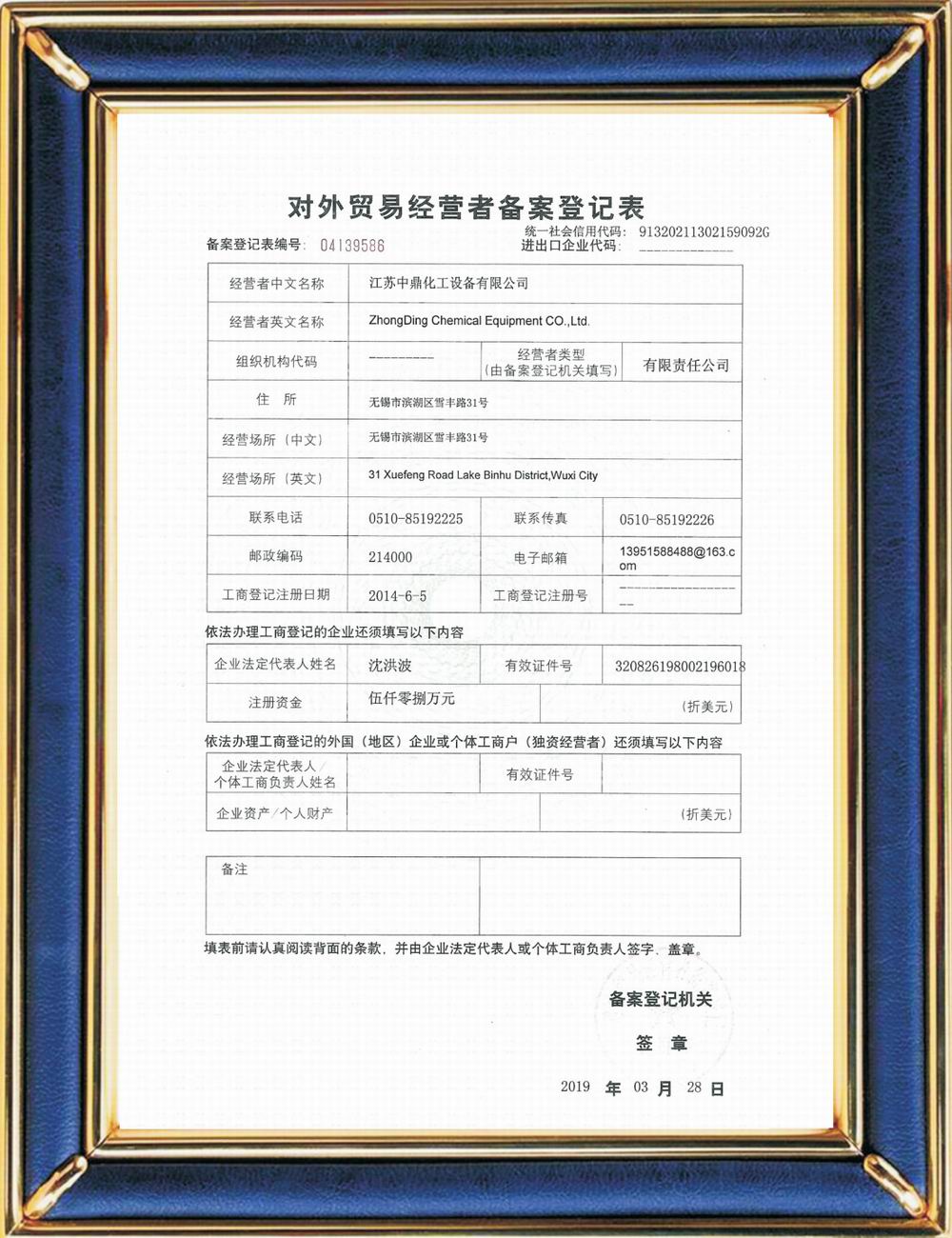 進(jìn)出口/對(duì)外貿(mào)易經(jīng)營者備案證