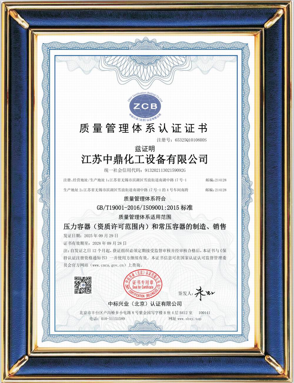 ISO9001質(zhì)量體系認(rèn)證證書