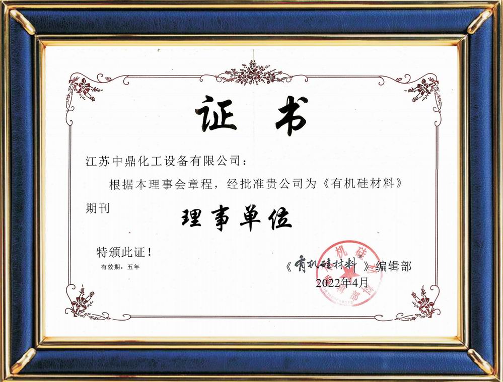 有機(jī)硅材料期刊理事單位證書