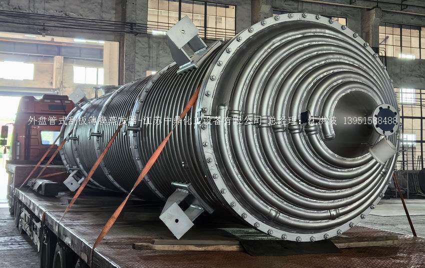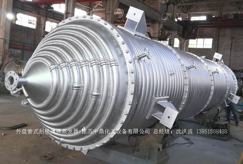 江蘇中鼎化工設(shè)備有限公司--離心式刮板薄膜蒸發(fā)器主要由加熱外盤(pán)半管式夾套(半管夾套內(nèi)走蒸汽,導(dǎo)熱油,熔鹽或者熱水等循環(huán)給蒸發(fā)器外壁加溫,通過(guò)熱傳導(dǎo),把蒸發(fā)器內(nèi)壁形成的物料薄膜中的水份蒸發(fā)減少,提高物料的濃度百分比。一般設(shè)計(jì)壓力為0.3mpa~2.5mpa左右,如果是蒸汽溫度一般在180°以下,導(dǎo)熱油溫度一般在280°以下,熔鹽溫度一般在380°以下。